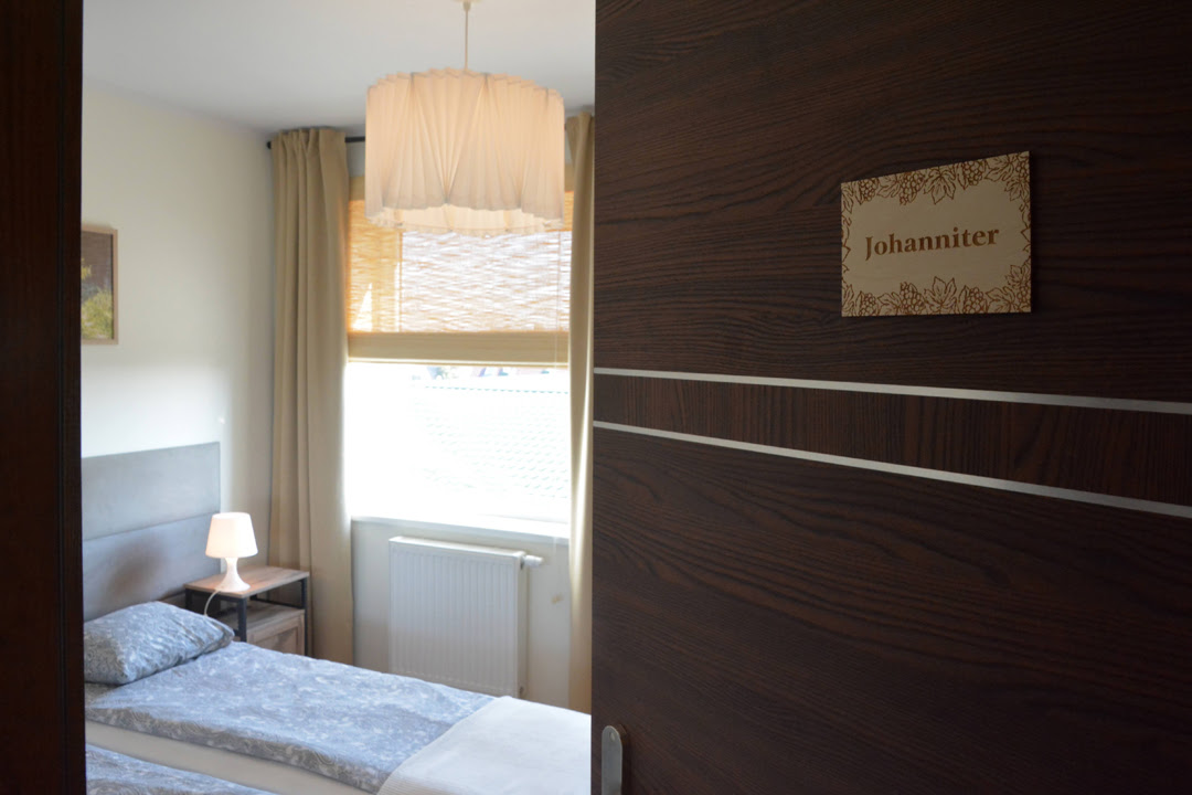 Pokój Johanniter na piętrze to propozycja dla par. W podwójnym łóżku spokojnie przenocują także członkowie tej samej rodziny. Pokój posiada mała łazienkę.