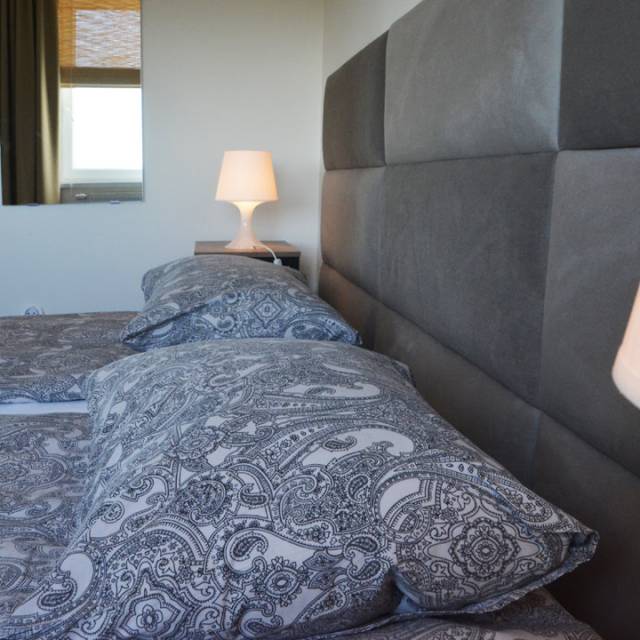 Wyposażenie: dwa pojedyncze łóżka złączone w jedno duże podwójne łóżko z możliwością rozsunięcia, pościel z poszewkami, narzuty, szafki nocne, lampki nocne, telewizor LCD, szafa, wieszak ścienny, stojak na bagaż, lustro, bezprzewodowy dostęp do internetu.
