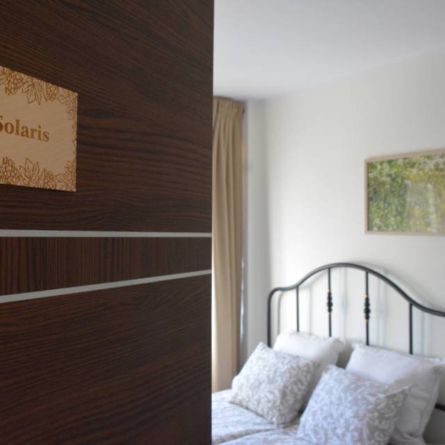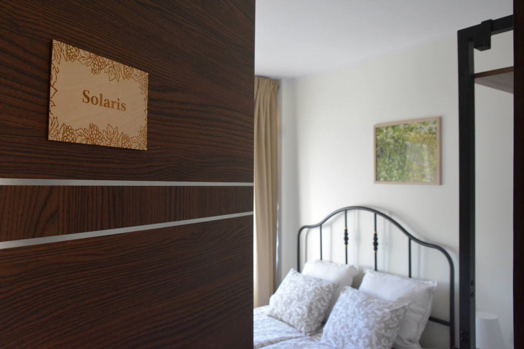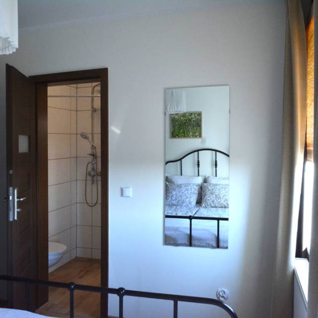 Pokój Solaris znajduje się na piętrze. Ten urokliwy pokój to propozycja dla par. Pokój posiada małą łazienkę.