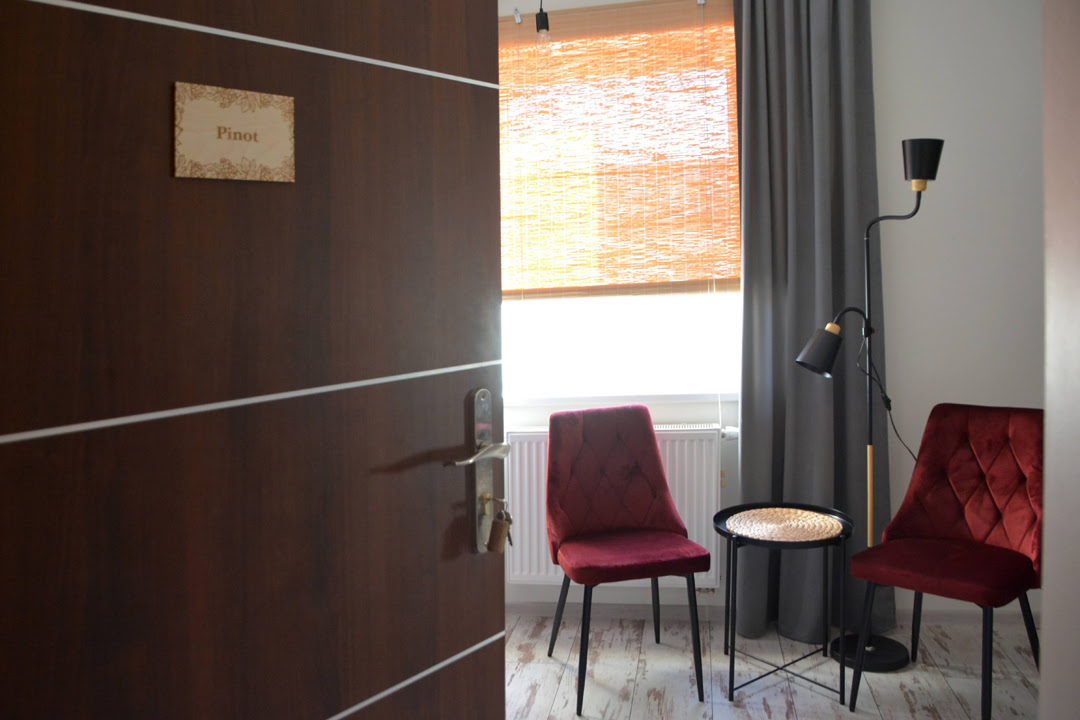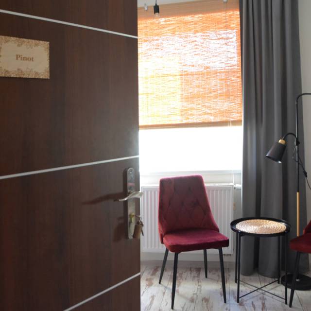 Pokój Pinot to idealne rozwiązanie dla dwóch osób, które cenią sobie wygodę i spokój. Pokój znajduje się na parterze.