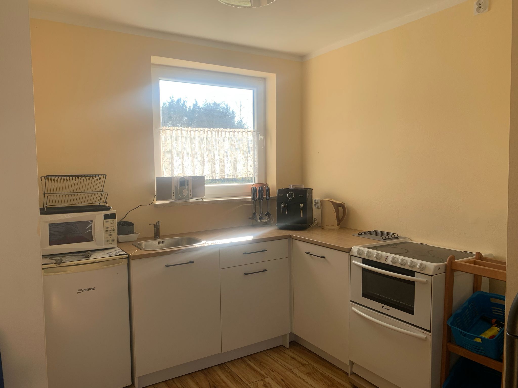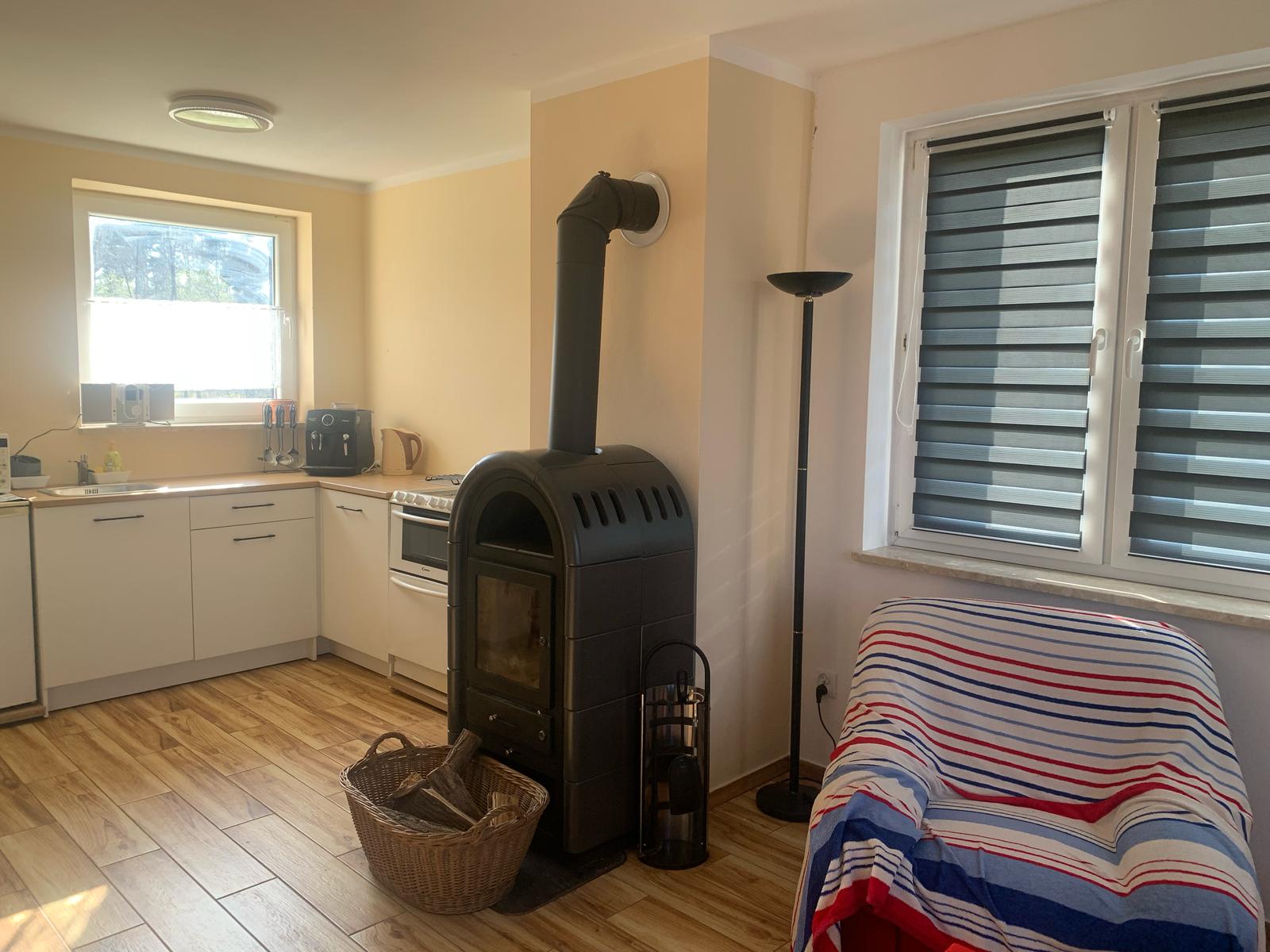 Przestronny salon z w pełni wyposażonym aneksem kuchennym
