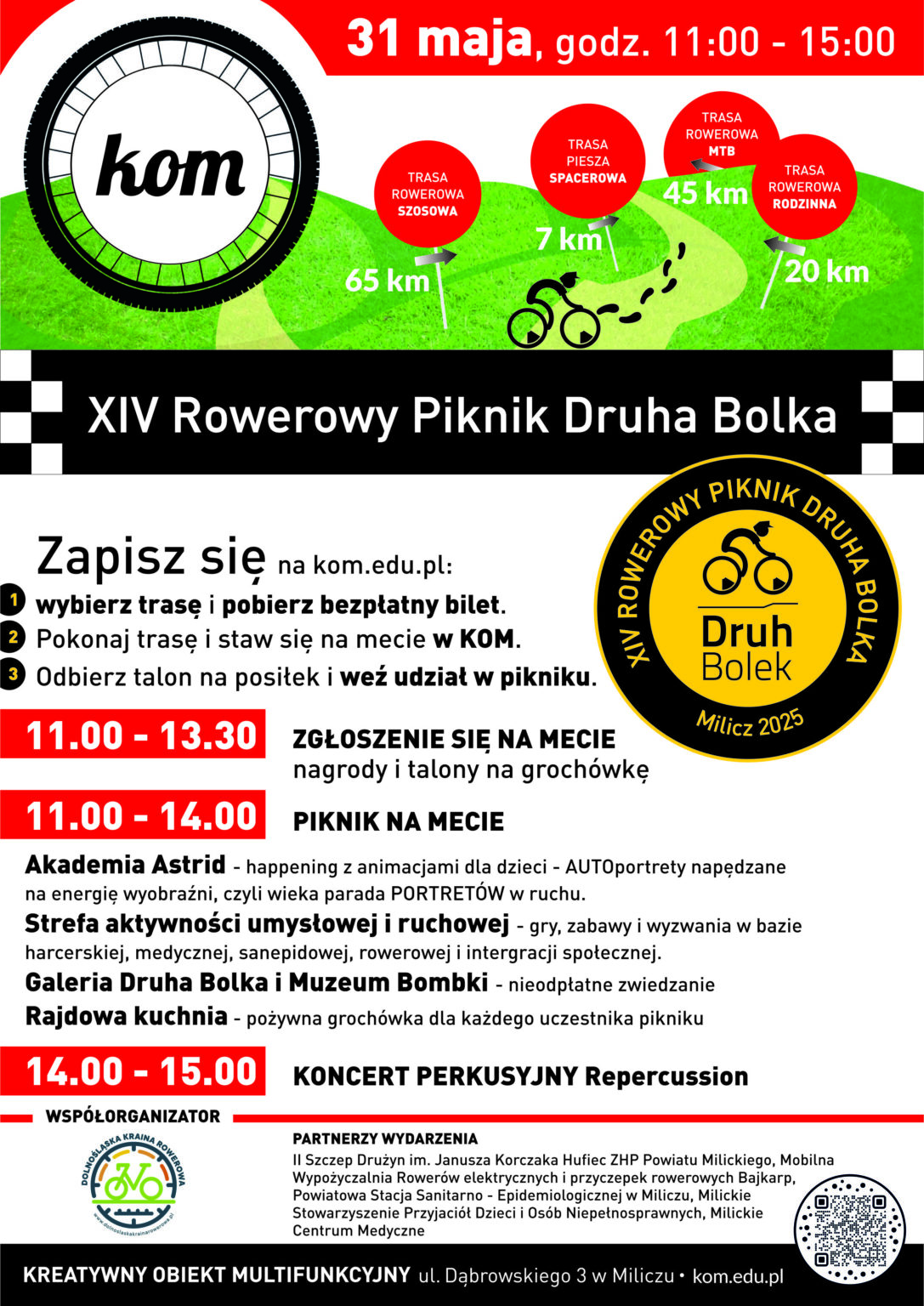 W trasę możesz pojechać samodzielnie lub z grupą, która staruje spod KOM o godz. 09.00 w dn. 31.05.2025
