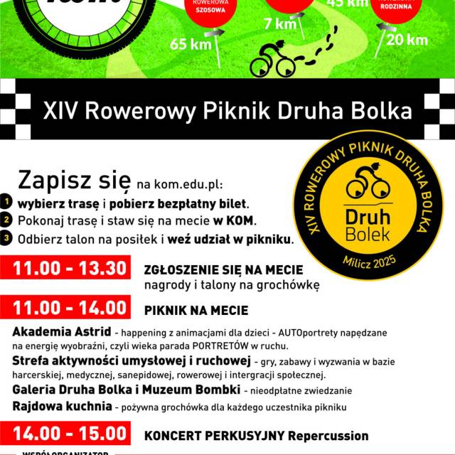 TRASA SZOSOWA 65 km zaplanowana w ramach XIV edycji Rowerowego Pikniku Druha Bolka w dn. 31.05.2025 - start i meta w KOM ul. Dąbrowskiego 3, 56-300 Milicz