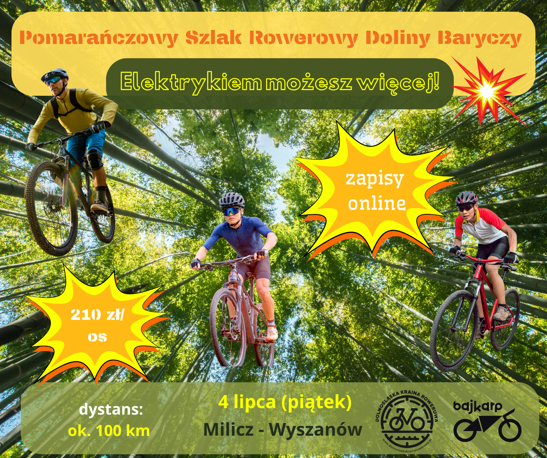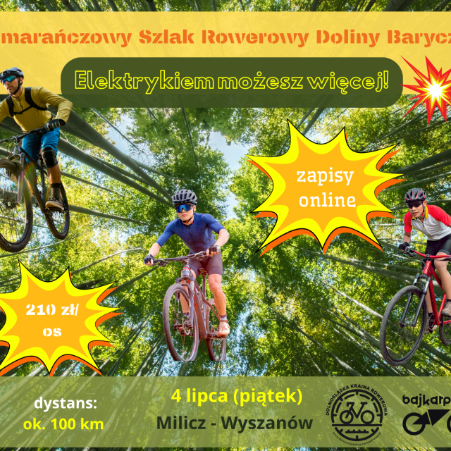 Czy już czujesz, że ta przygoda jest dla Ciebie? Nie obawiasz się niewygód, ale bardziej zbyt długiego dystansu? Niepotrzebnie! Jeśli chcesz zobaczyć najdziksze odcinki Baryczy i przejechać swoją pierwszą w życiu "setkę" w ciagu jednego dnia, ta wyprawa jest dla Ciebie! Jeśli dasz radę przejechać na rowerze tradycyjnym 50 km, to rowerem ze wspomaganiem elektrycznym poradzisz sobie z trasą dwa razy dłuższą. Oczywiście, będziesz miusiał(a) sporo pedałować, gdyż elektryk to nie motor, ale na pewno nie zmęczysz się tak, jak na zwykłym rowerze. To co, masz ochotę spróbować? Zapraszamy w pojedynkę, w grupie znajomych, w parach. Grupa będzie liczyła max. 20 osób + przewodnik.