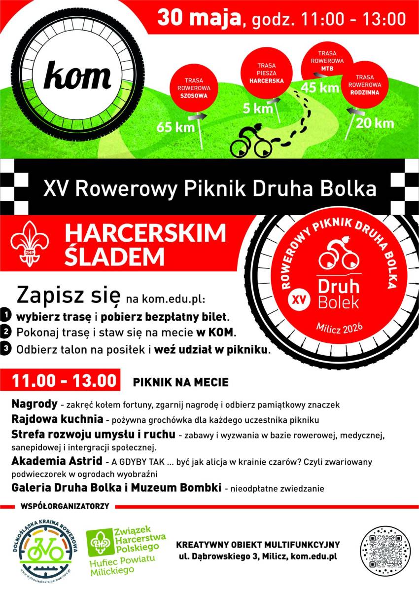 Zapraszamy na XV Rowerowy Piknik Druha Bolka. Tegoroczna jubileuszowa edycja Pikniku odbędzie się pod hasłem "Harcerskim Śladem".