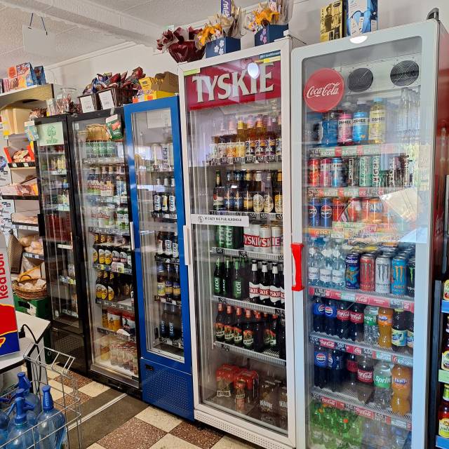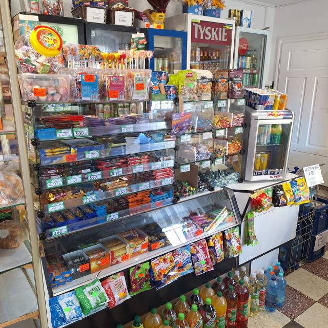 A wide range of groceries, hot and cold snacks, and soft drinks, available to eat in or take away.