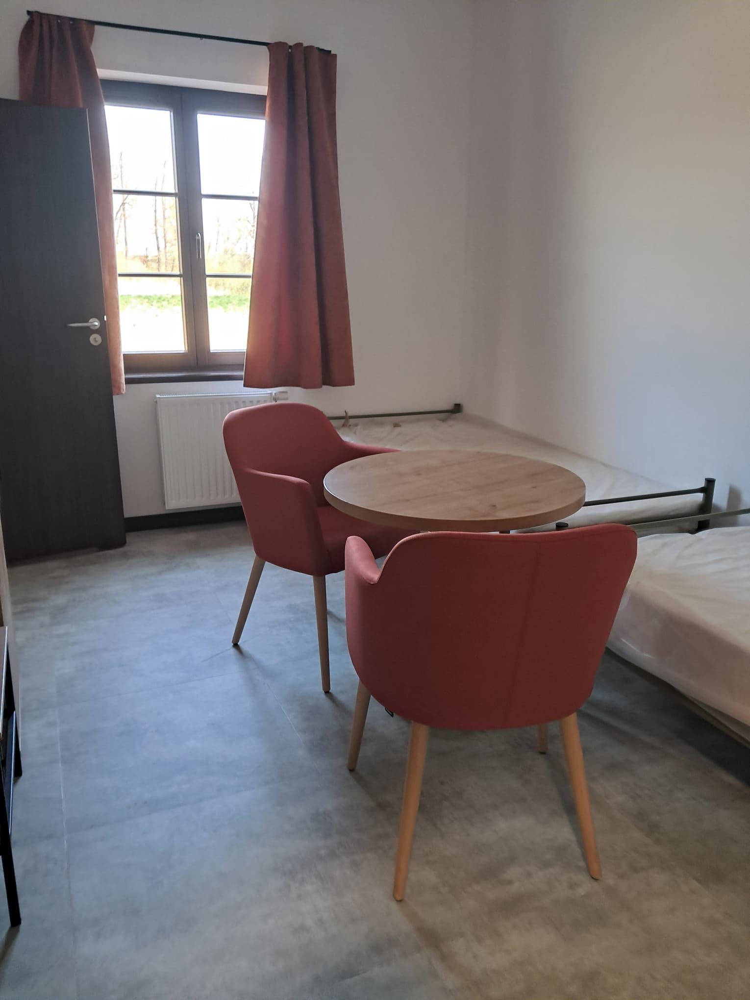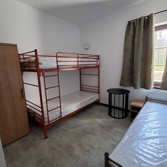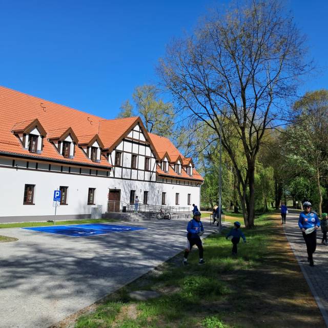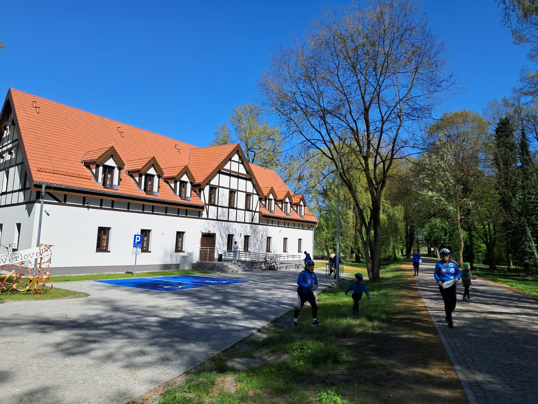 The Żmigród Cycle Hostel is a comfortable hostel situated within the picturesque Palace and Park Complex, ideal for both cyclists and anyone seeking a peaceful break close to nature. The hostel offers 52 beds in a welcoming and functional setting, as well as secure bicycle storage. Each room is allocated one parking space in the car park adjacent to the hostel. The car park is monitored, and access is restricted to guests staying at the hostel. There are also several CCTV cameras on the premises, ensuring the safety of our guests around the clock.